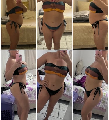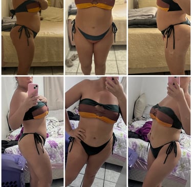 Na foto abaixo nota-se a diferença em menos de 10 dias aplicando o método. O inchaço e estufamento sumindo, o corpo tomando forma, me sentindo mais leve e disposta.
